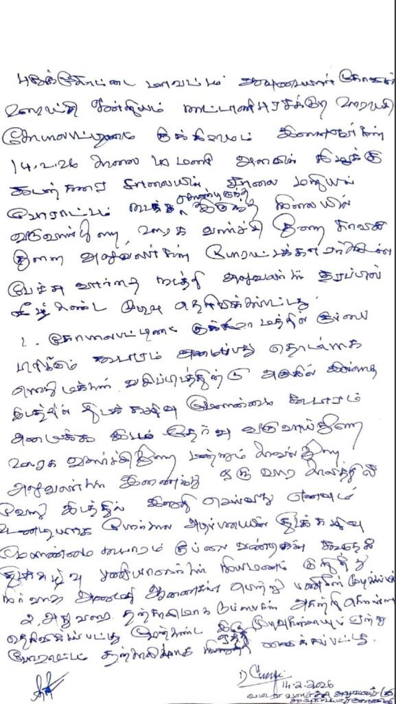 இதனை கண்டித்து கடந்த 14.02.2026 அன்று இளைஞர்கள் போராட்டத்தில் ஈடுபட்டனர். அப்போது நேரில் வந்த ஆவுடையார்கோவில் ஒன்றிய வட்டார வளர்ச்சி அலுவலர், வருவாய்த்துறை மற்றும் காவல்துறை அதிகாரிகள், “ஒரே வாரத்திற்குள் குப்பை கொட்டும் பிரச்சனைக்கு நிரந்தர தீர்வு காணப்படும்” என எழுத்துப்பூர்வமாக உறுதியளித்தனர்.